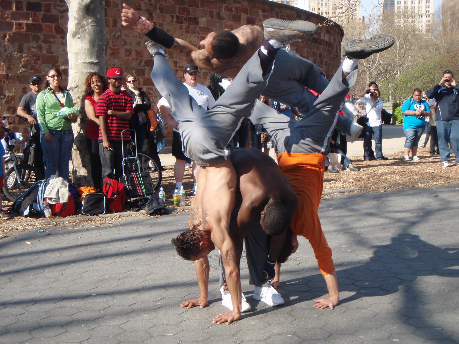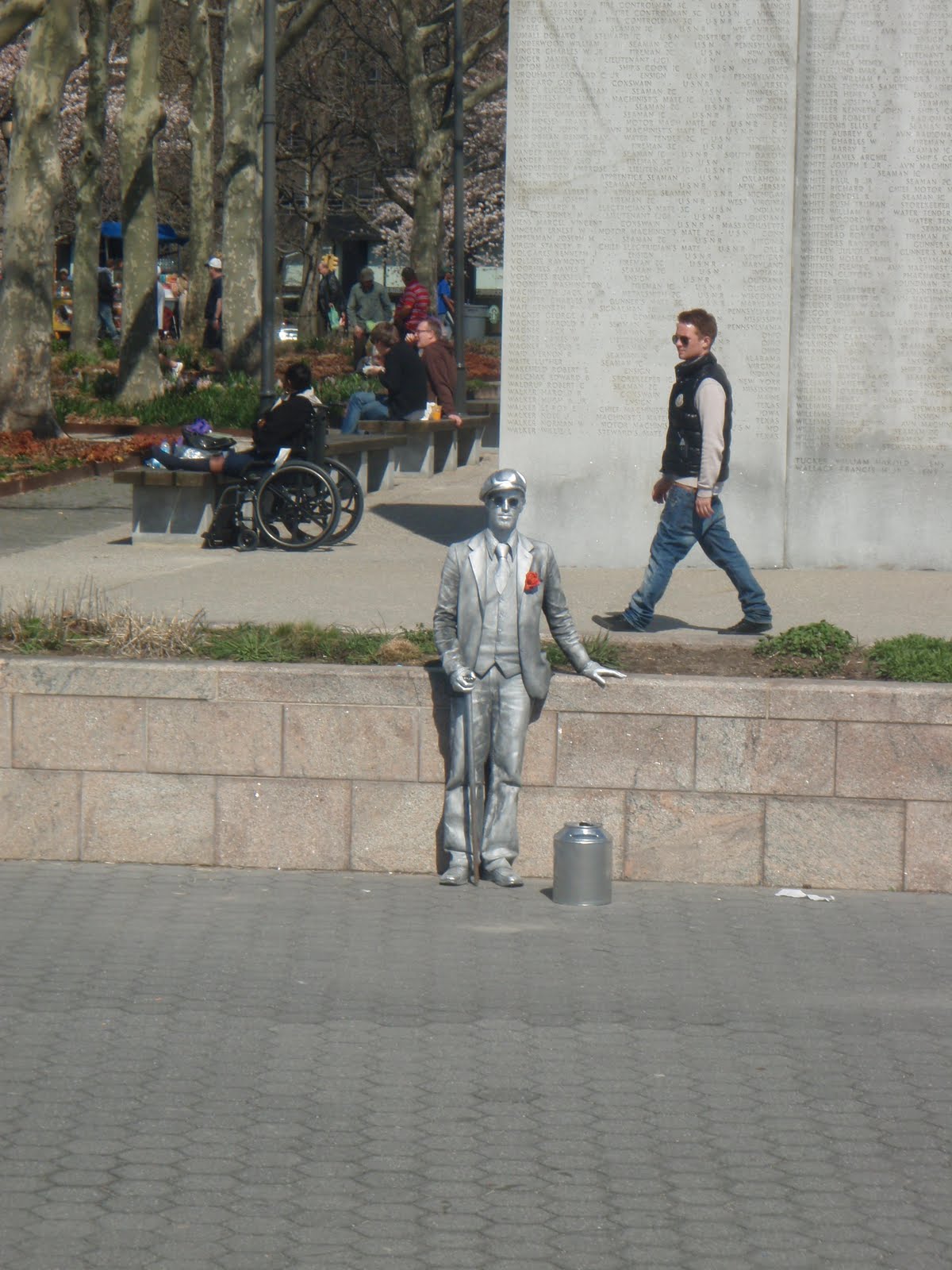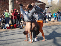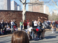 Today, we took my mother-in-law to Battery Park, but it was my (and my son's) first visit. We rode the ferry, then took a stroll on the boardwalk. While my mother-in-law was getting a caricature of her drawn (by one of many, many artists along the boardwalk) my son and I took in some street performers.