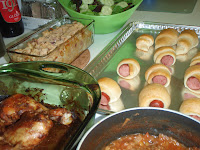 I was on a roll tonight - baked chicken, stewed lentils, macaroni pie, pigs in a blanket and a green salad. And can I just add that I love the Little Dough Boy i.e. Pillsbury, but now with my new mixer, I can whip up some dinner rolls in no time.